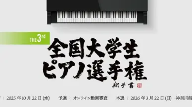 コンクール 第3回全国大学生ピアノ選手権の開催が決定しました!【エルフラット】 全国大学生ピアノ選手権とは、エルフラットが主催する、『音大生以外』の大学生・院生が対象の新しいピアノ競技会です。全国大学生ピアノ選手権は第3回の開催が決定しています!今回は第3回全国大学生ピアノ選手権... 2025.09.20 コンクール全国大学生ピアノ選手権